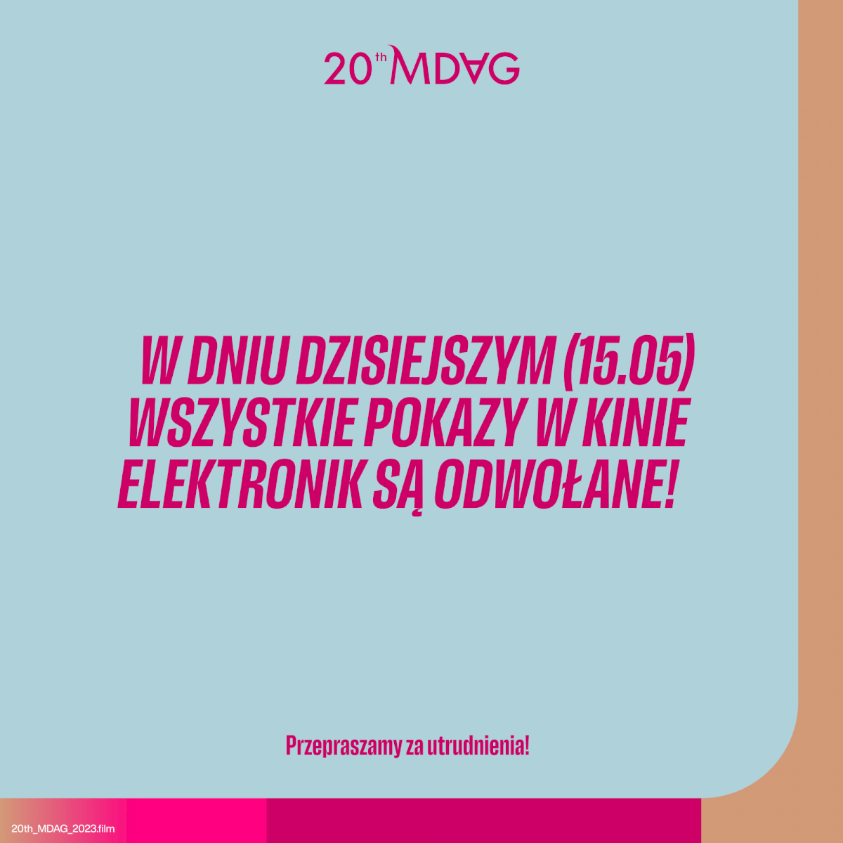 Pokazy w kinie Elektronik w dniu 15 maja zostają odwołane!
